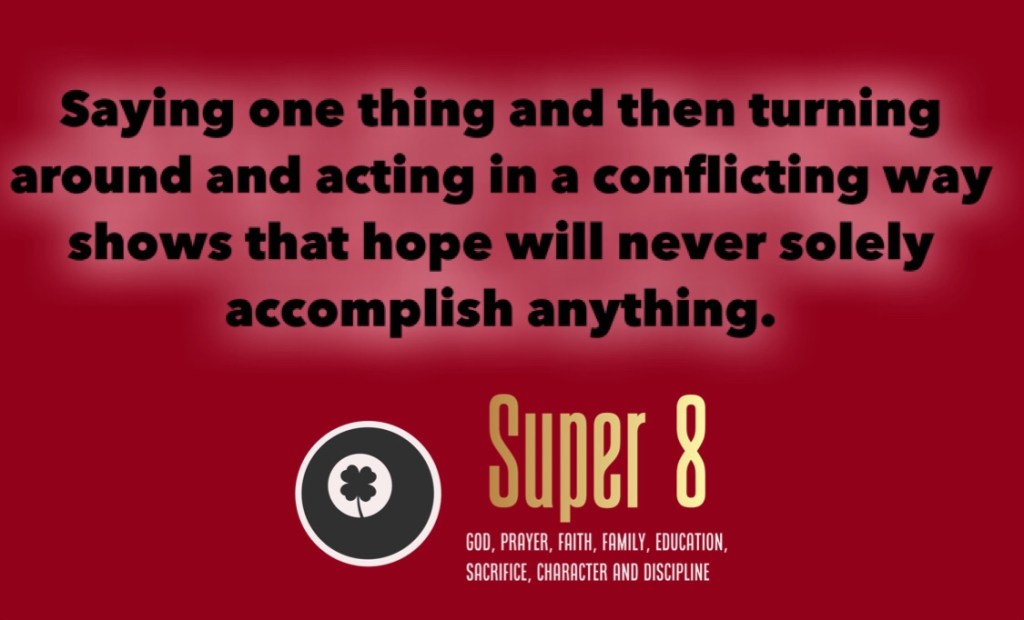 I’ve heard the word hope a lot recently in my own world… “I hope there’s college football”…”I hope you guys can play in the spring”…”I hope classes get back to being in person.” I’ve heard all of that, yet it’s been met with no action. Saying one thing and then turning around and acting in a conflicting way shows that hope will never solely accomplish anything.