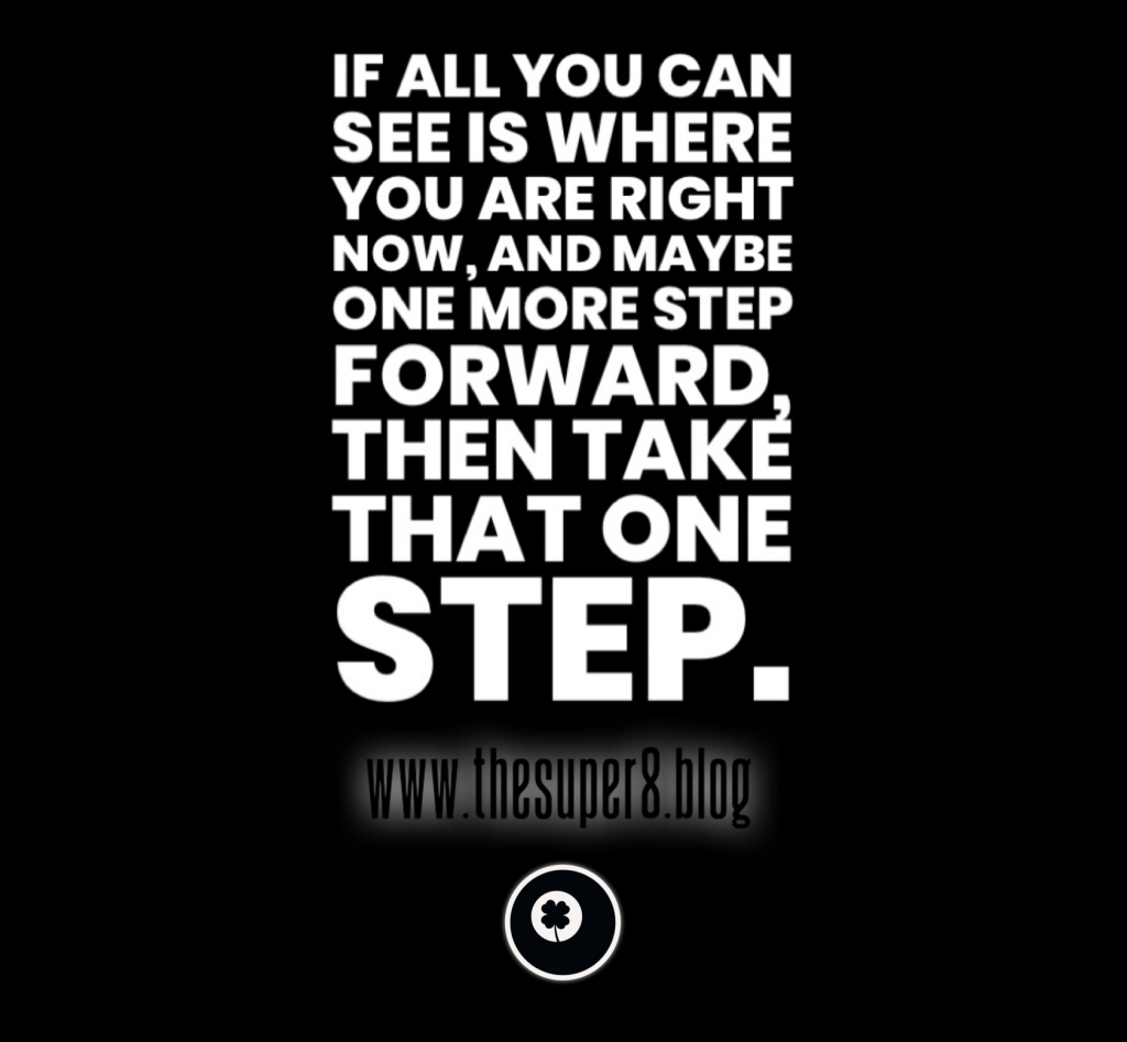 If all you can see is where you are right now, and maybe one more step forward, then take that one step. Then take the next one. Then the next. Then see where that leads you. It’s okay to not know how the next 10, 15, 20, or 20,000 steps are going to go before you even take the first one. If it feels right, then do it. If it brings you joy, then do it. If it puts a smile on your face, then do it. Then address the next emotion as it comes. By taking each step as it comes, the greater grandeur of fear disappears because you can see where you are going and how that makes you feel right now.